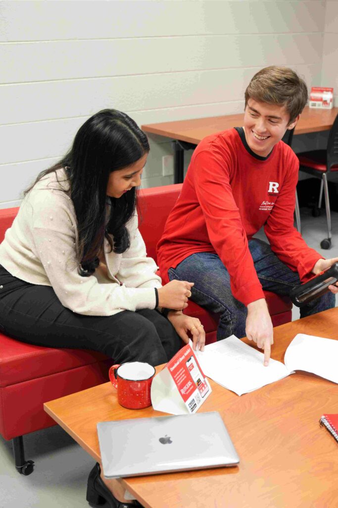 Conference attendees Myo and Alan reviewing course notes