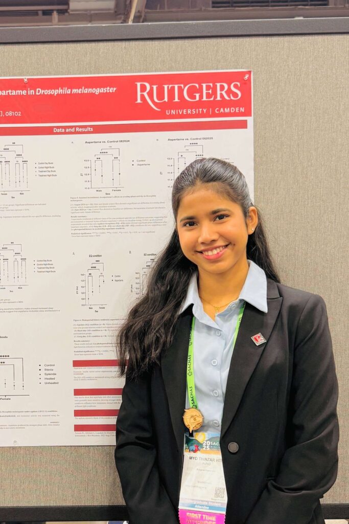 Myo, a senior undergraduate student majoring in biology and minoring in chemistry, current conducts research in Dr. Lee’s lab, studying the effects of artificial sweetener on circadian behaviors in Drosophila melanogaster. While her pursuit of a biology degree was initially motivated by a dream of medical school, her research and conference experience has led her in a different direction.
